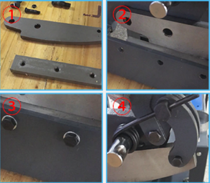 1. Take off the upper and lower blades need to be replaced. Clear the base of blades.