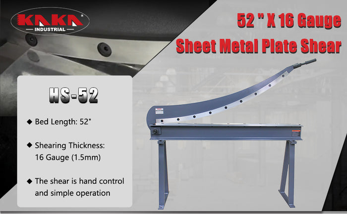 - The HS-52 features a spacious 52-inch bed width, allowing you to cut large sheets of metal with ease. Whether you're working on construction projects or industrial fabrication, this shear ensures efficiency and precision.