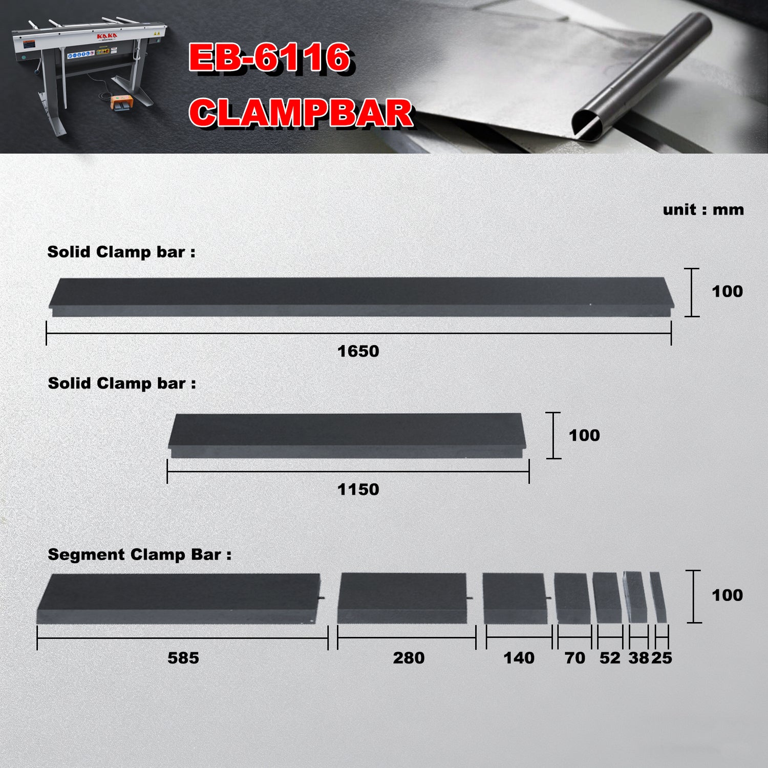 - The steel clamping bar can be made of straight bars (of various widths for tight boxes) for straight bends or segmented clamping bars for box and pan applications of any other configuration such as totally enclosed boxes, triangles, alternate bends on varying planes, round items such as scrolling applications, and much more.