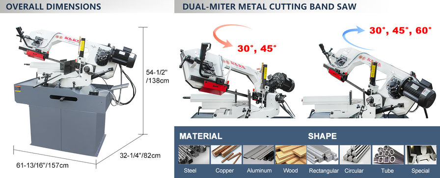 KAKA INDUSTRIAL Dual Miter Metal Bandsaw - 12 inch x 6inch, 60° Right/45° Left Swivel, Dual-Speed Motor, Hydraulic Feed, 230V 3-Phase | Ideal for Structural Steel, Pipes, Fabrication BS-126G is backordered and will ship as soon as it is back in stock.