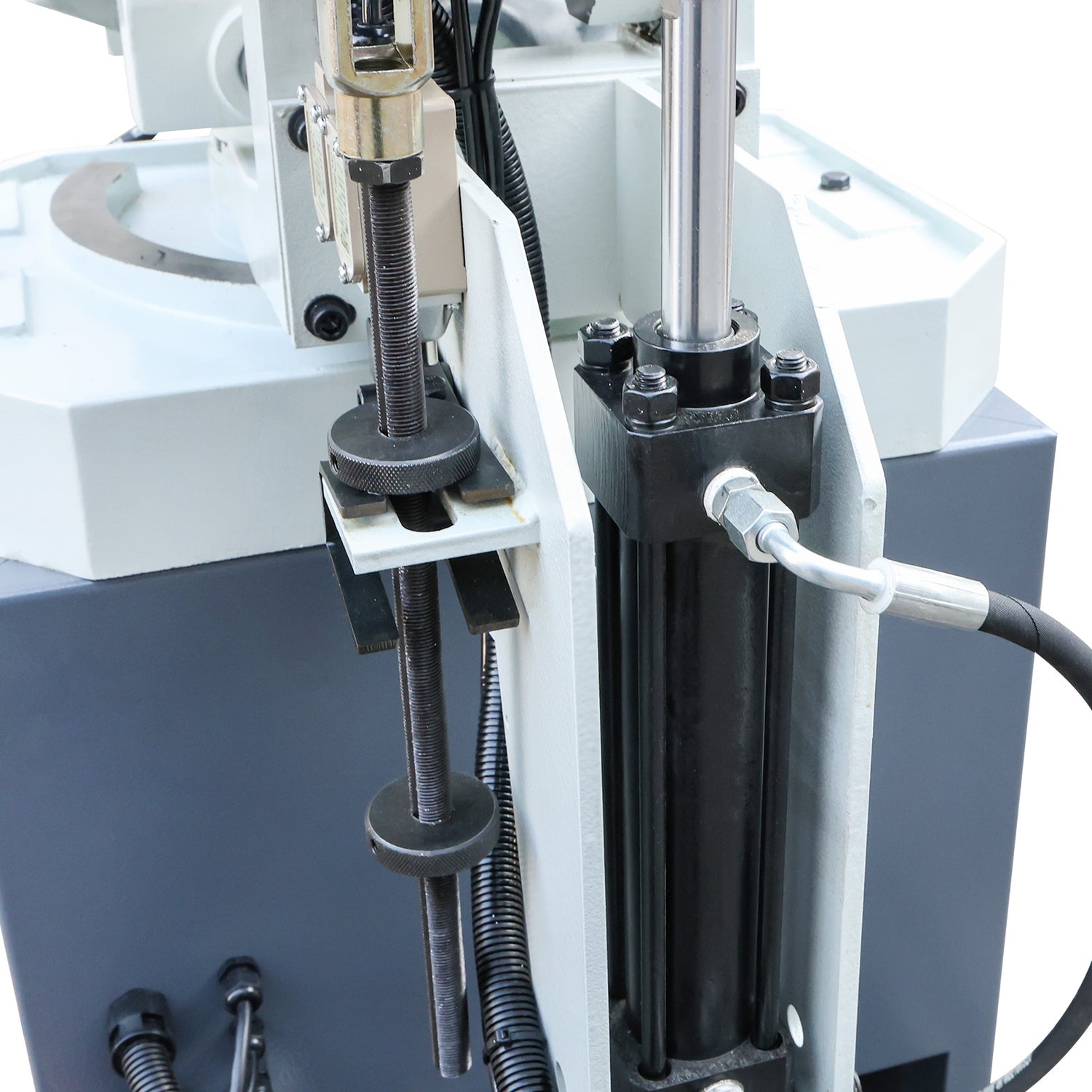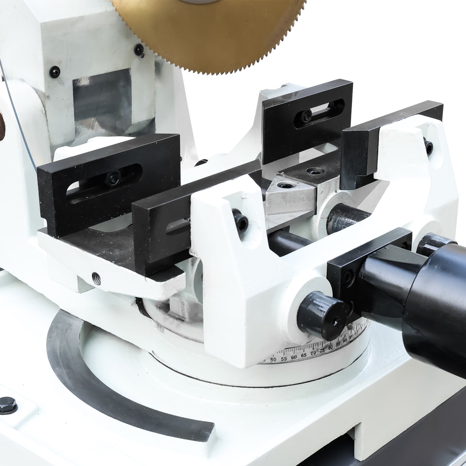 - Religious Precision and Stability: Hydraulic clamping and a double vise ensure workpieces are held securely, preventing slippage and ensuring consistent, accurate cuts every time, even at ±45° angles.
