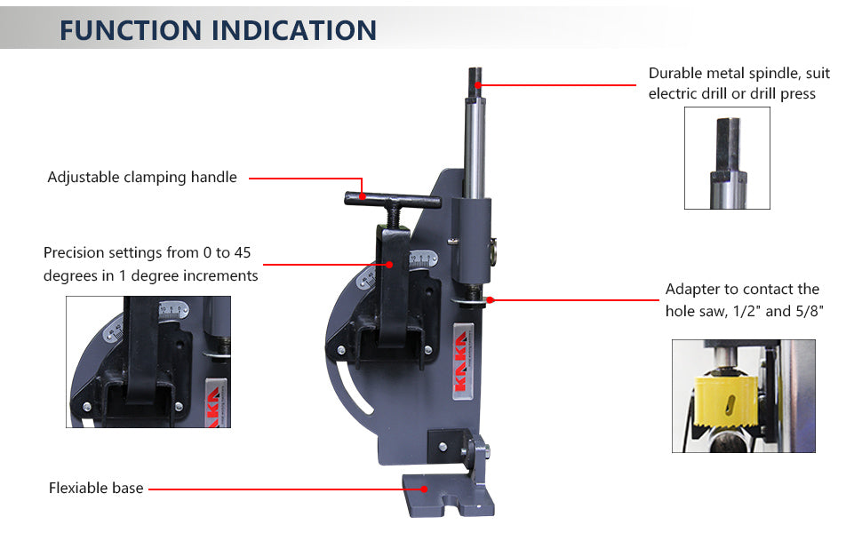 1、Kaka Industrial precision pipe notcher has a useful fixture for your drill press.Made of Aluminium, it is durable, light, and portable.